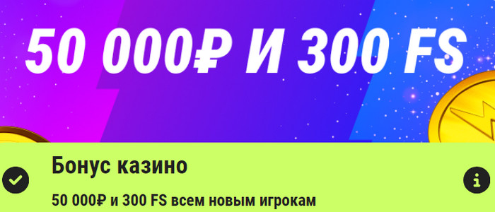 Welcome СУПЕРБУСТ — 50 000₽ и 300 FS в подарок после регистрации. Сделав свой первый депозит, игроки получают сверху бонус 300% от внесенной суммы и 300 фриспинов! Welcome БУСТ — 10 000₽ и 100 FS. Пользователи получают 150% от суммы своего первого депозита и 100 фриспинов!